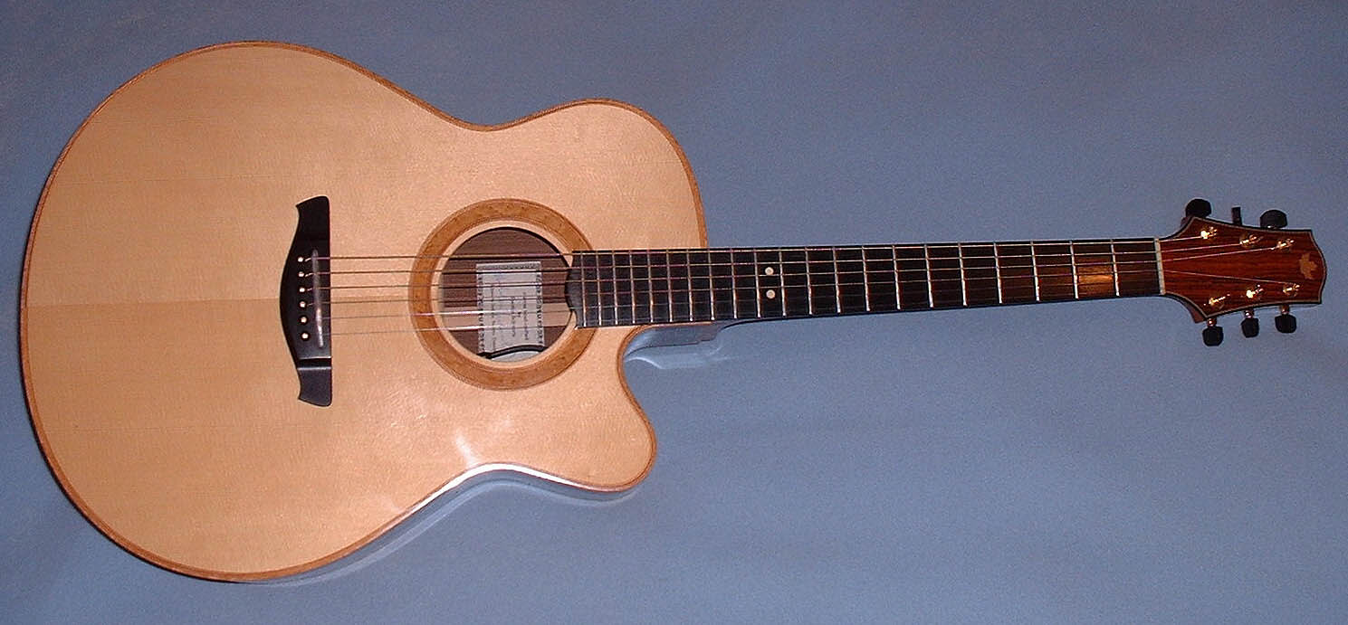 Description:  My own guitar: Schwartz Custom w cutaway. M-grade Engelmann Spruce, M-grade E. Indian Rosewood & Birdseye Maple trim & Maple Leaf inlay. Not for sale.